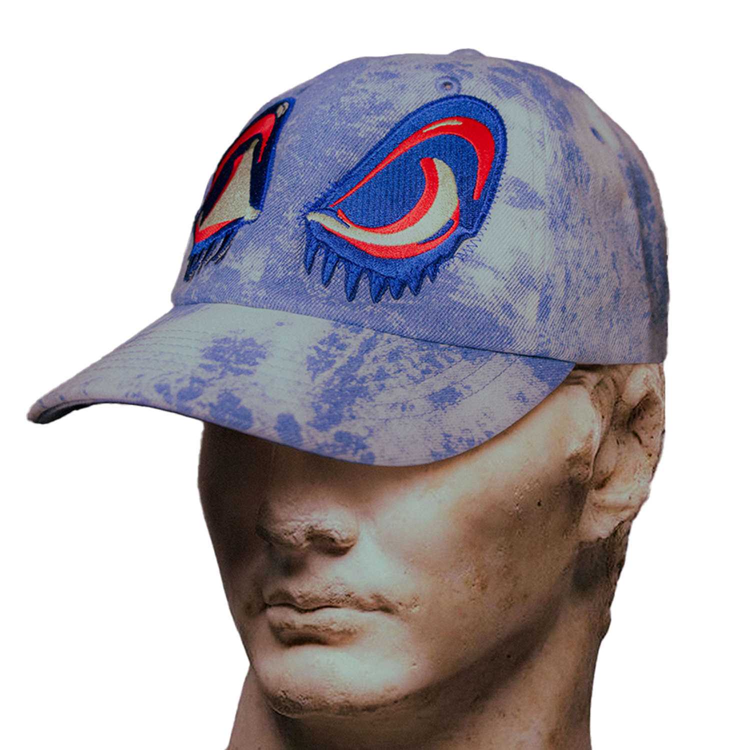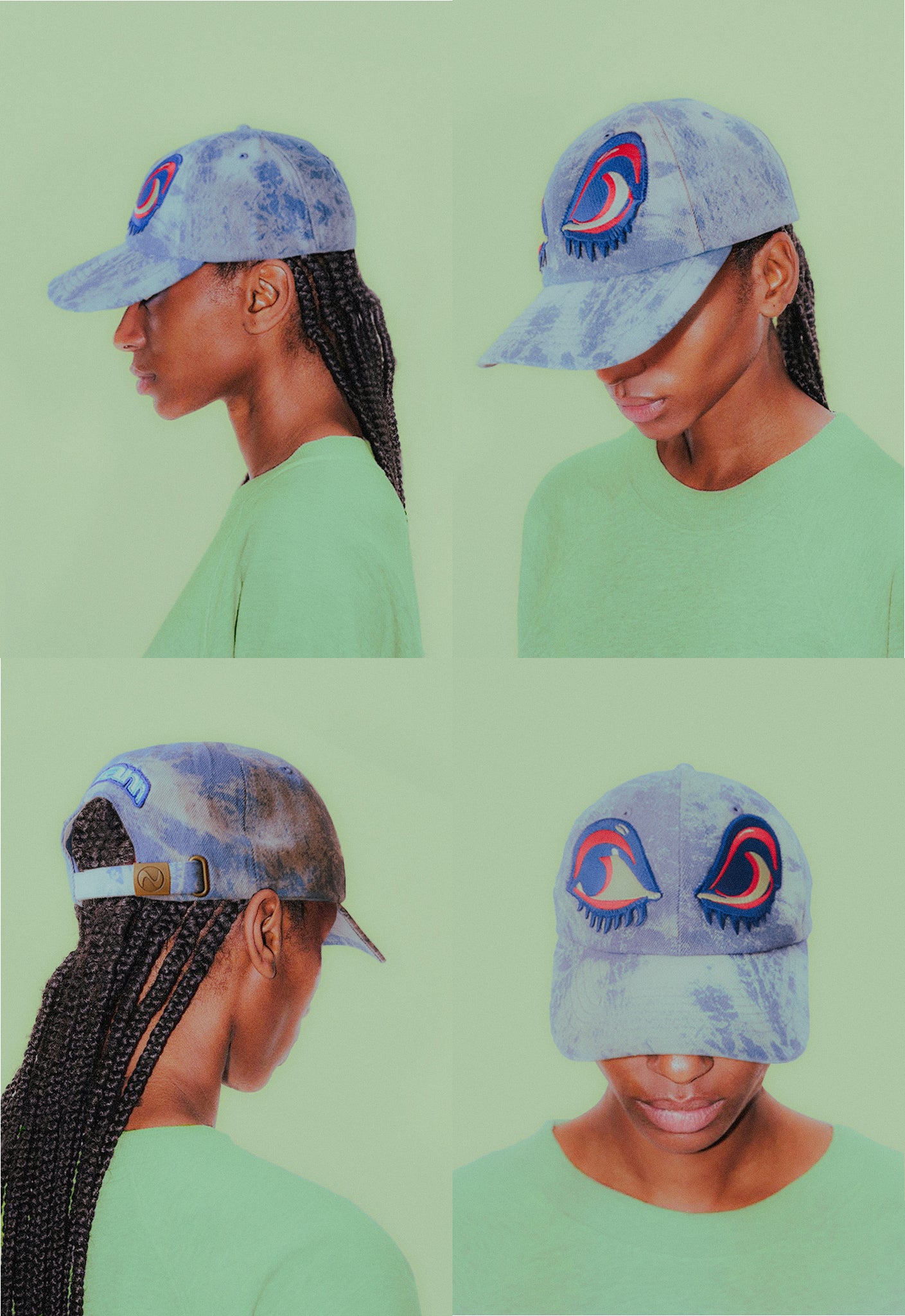 The ‘Eyes up here' Cap is constructed from heavyweight marble dyed cotton, finished with embroidered patches and an adjustable metal clasp. A premium piece, thoughtfully constructed for those who notice.