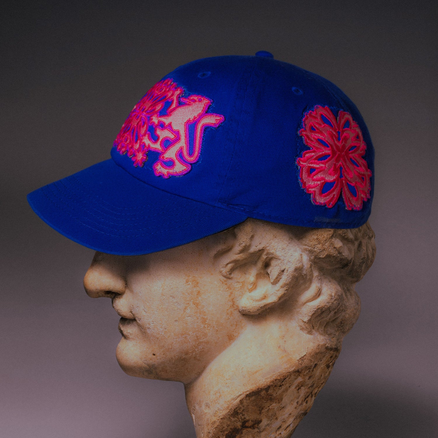 The ‘Light Trance' Cap is constructed from heavyweight royal blue pre-dyed cotton, finished with 3 embroidered patches and an adjustable metal clasp. A premium piece, thoughtfully constructed for those who notice. We have used Newhattan cap blanks that are known for their top quality and popular fit.