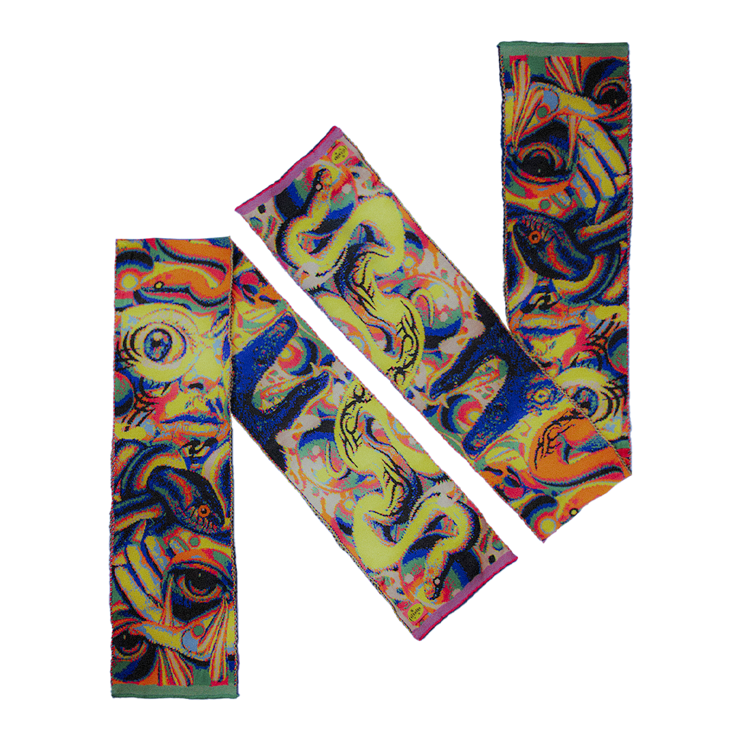 Knitted locally in Melbourne, the ‘Paradox’ scarf is a cotton / wool blend, made with majority cotton, and Australian Merino wool. This piece is knitted with 8 different coloured yarns, resulting in a thick and toasty weight.